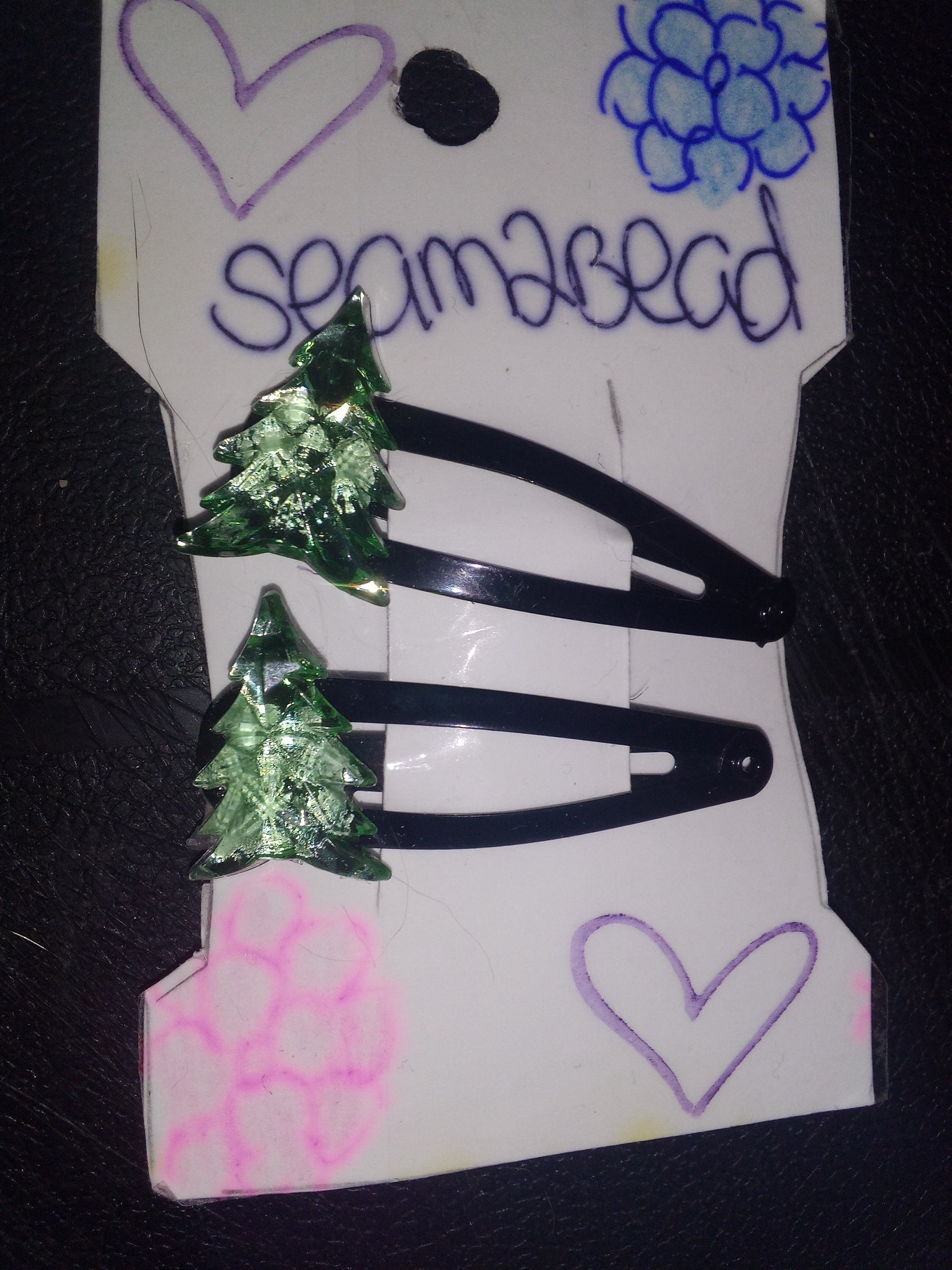 This hair clip that has a plastic stick embellishmentson itm it's also made of black metal hair clip