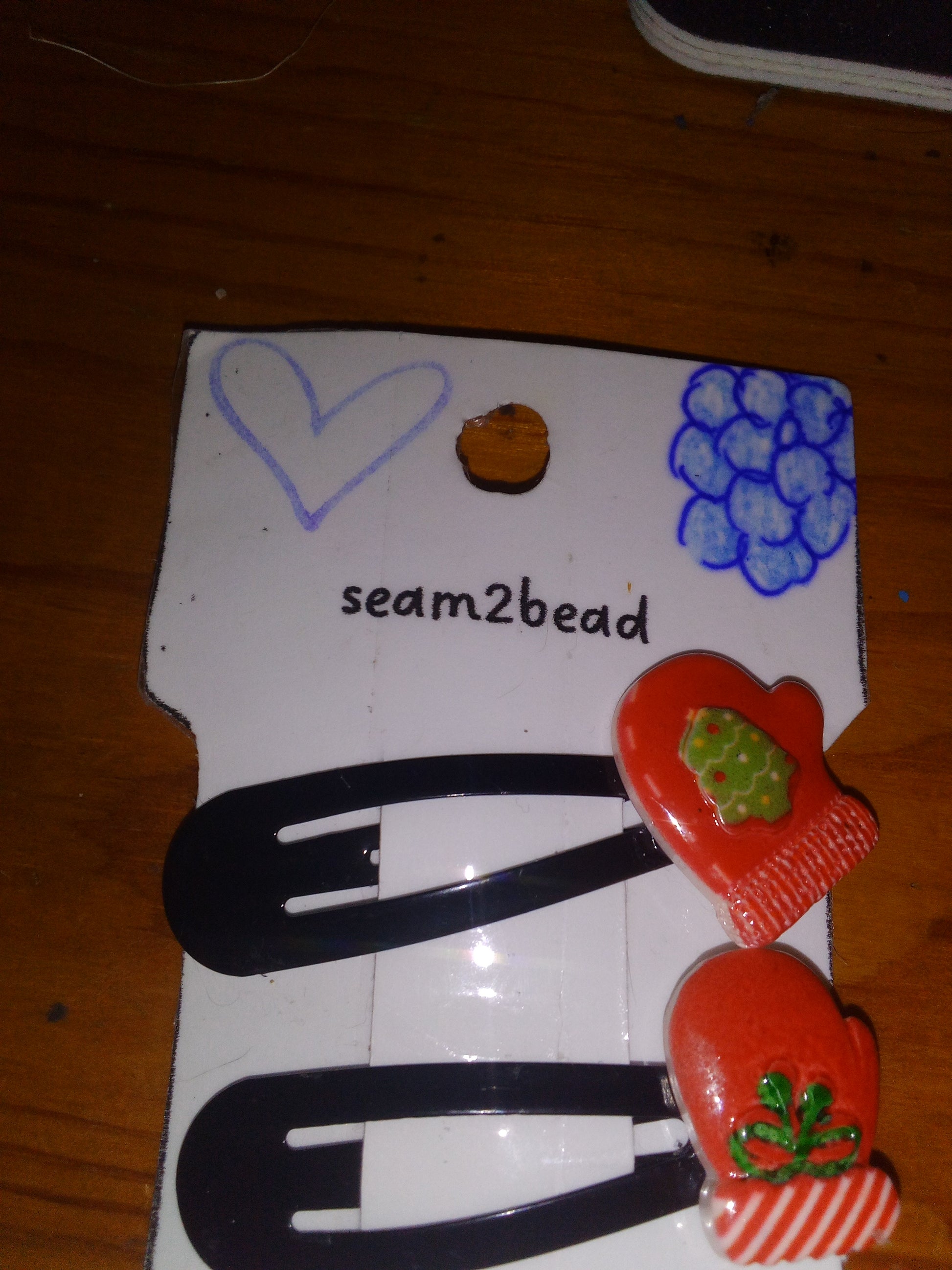 This Xmas hair clip that has a plastic embellishments on it and it also made of black metal hair clip