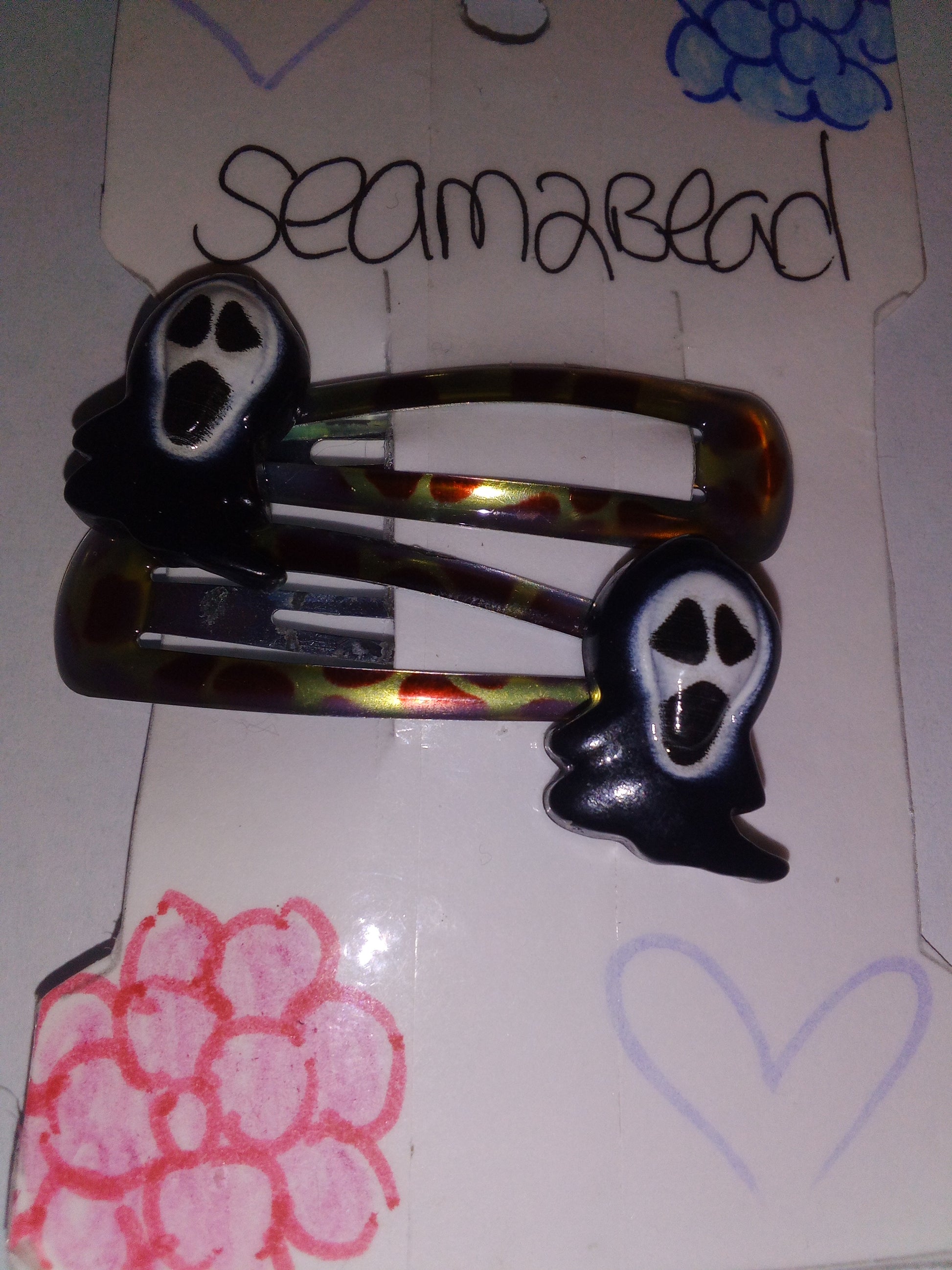 This hair clips that has plastic embellishments on it. And it made of black metal hair clip