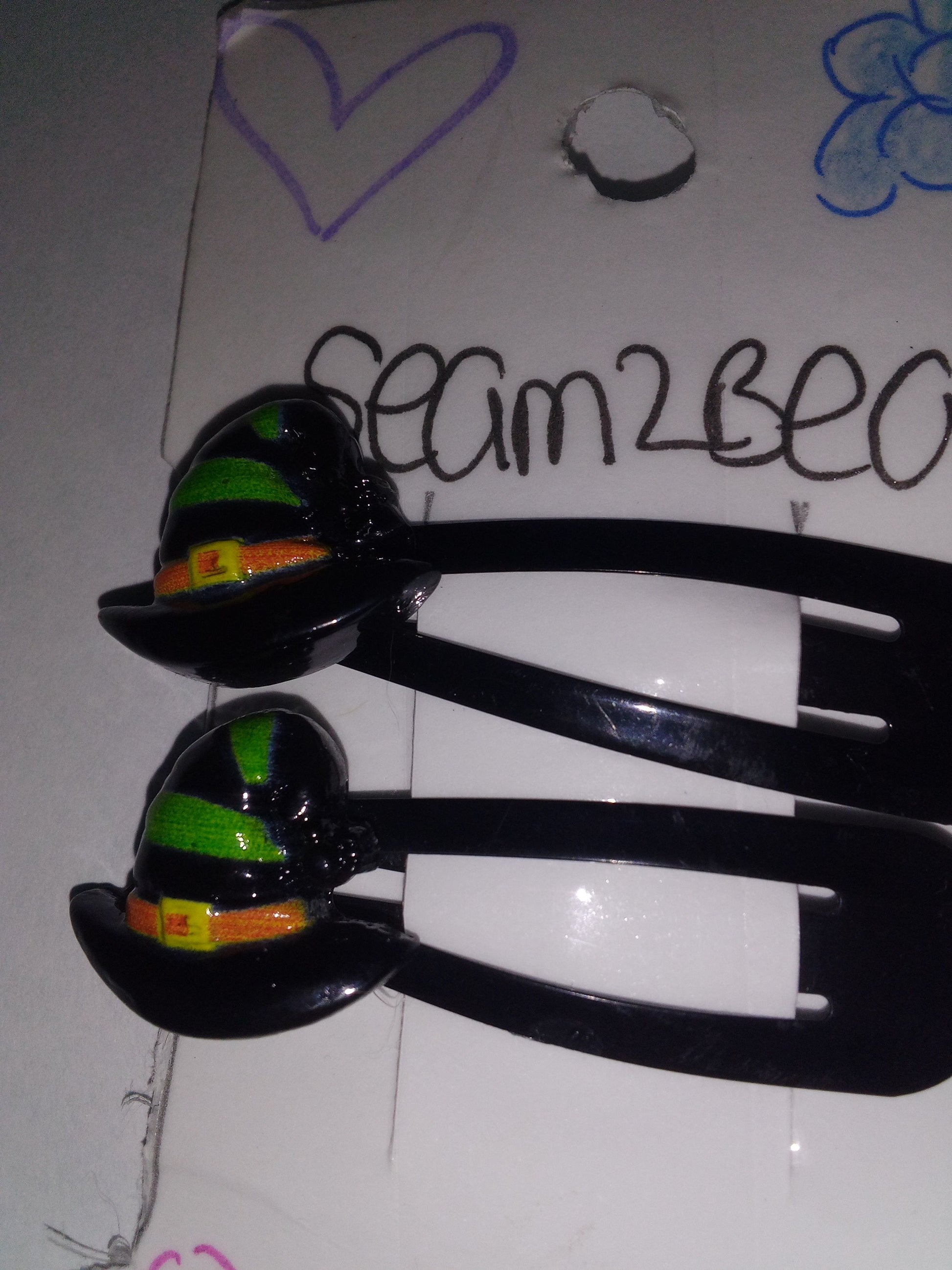This hair clip that has plastic embellishments on it and it also has black metal hair clip