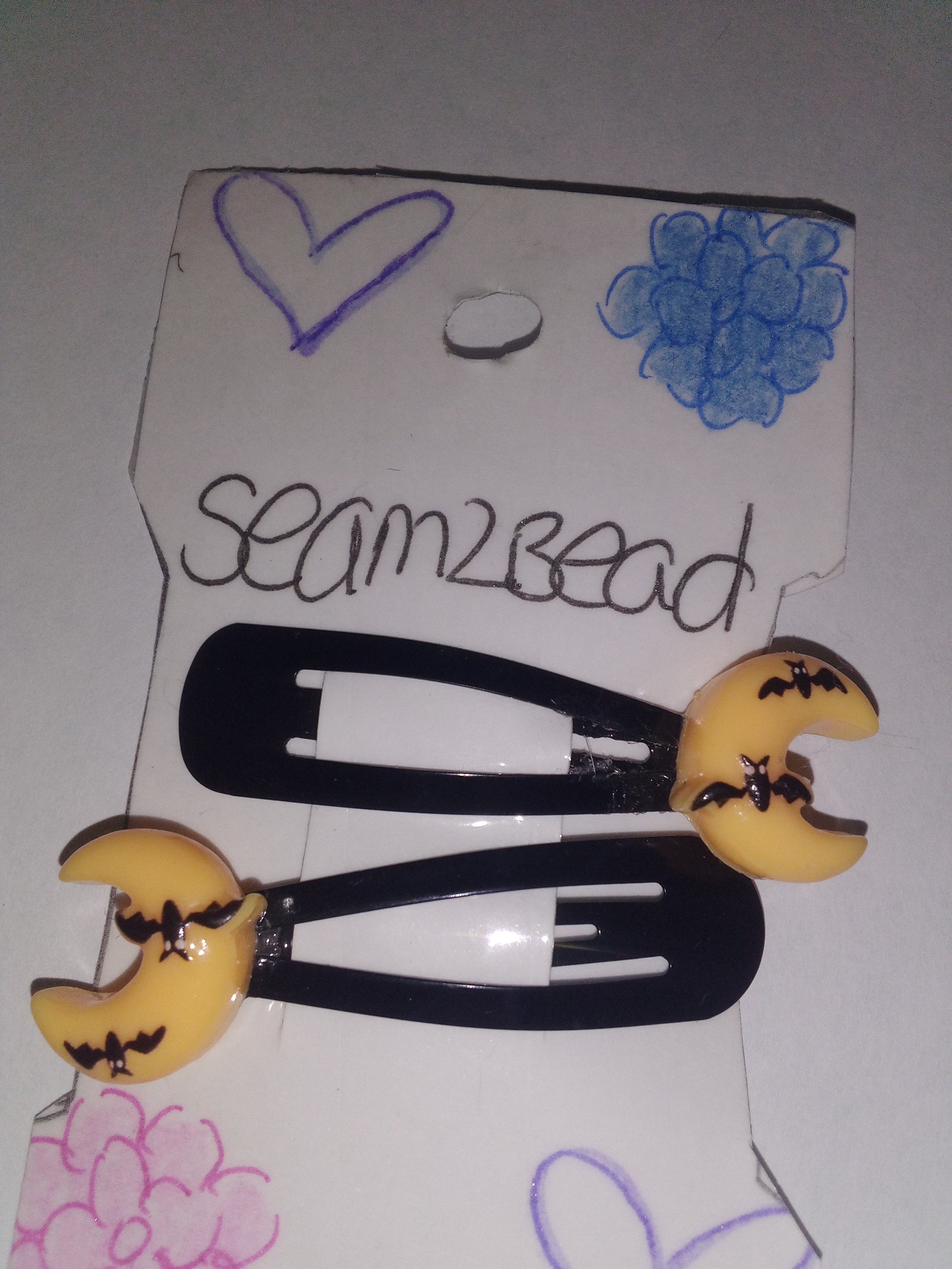 This hair clip that has plastic embellishments on it and it also has black metal hair clip